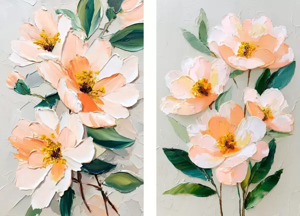 Poster Impasto-schilderij met een combinatie van een groot boeket en losse bloemen N° d00579