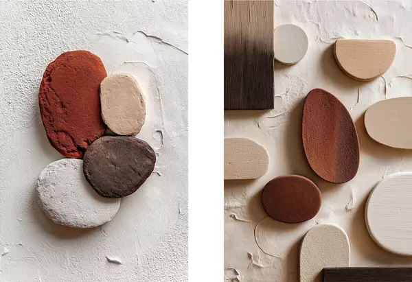 Poster Abstracte composities met volumetrische geometrische vormen op een getextureerde achtergrond d00597