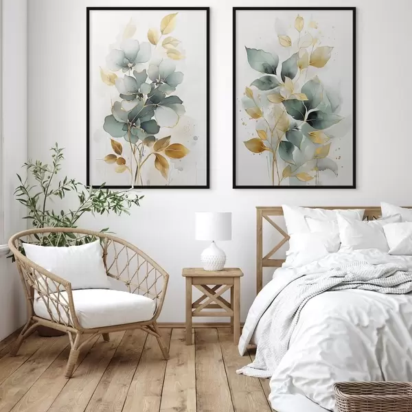 Poster Abstracte takken met bladeren d00610