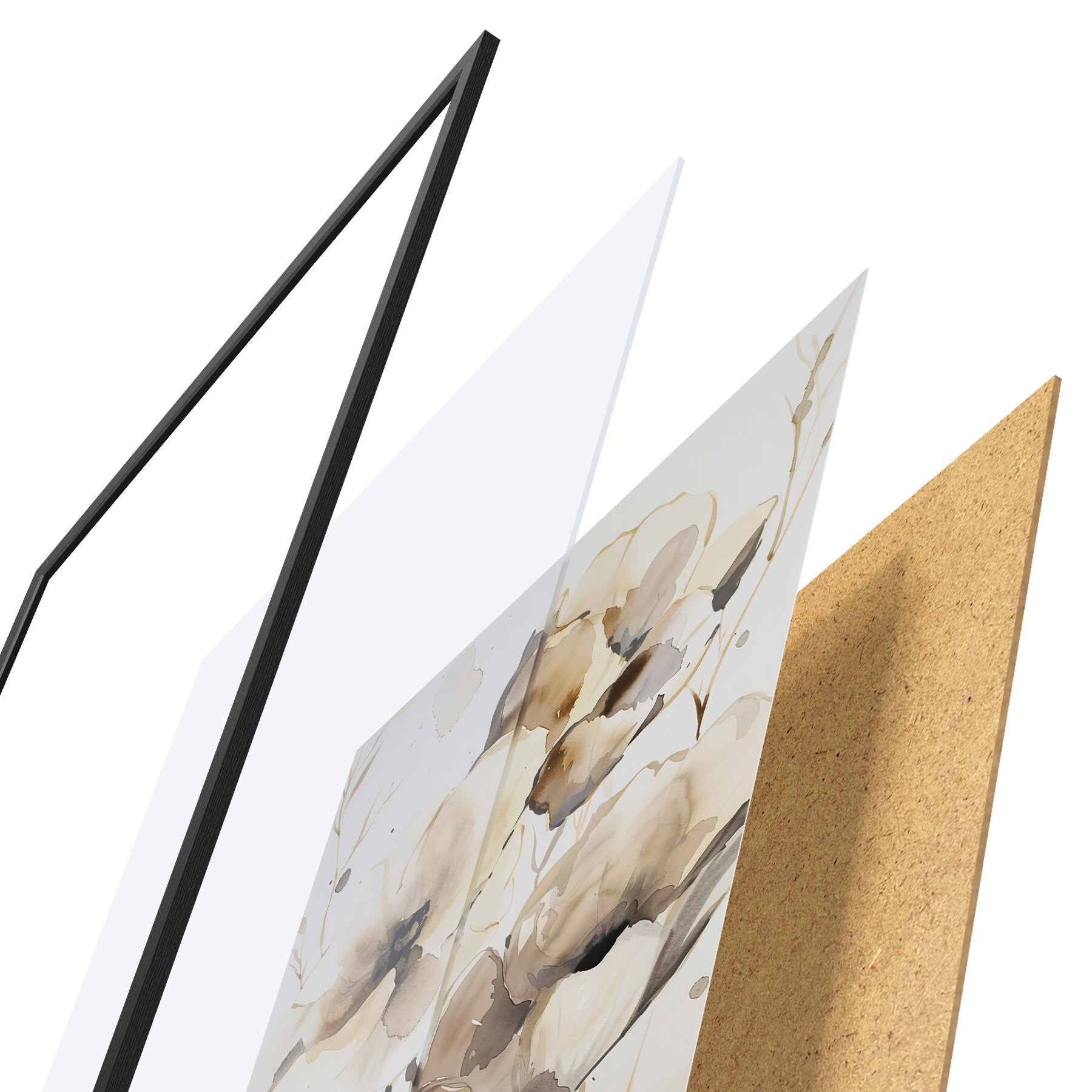 De poster bestaat uit een frame, plexiglas, geprinte afbeelding en spaanplaat achterkant. De poster kan meteen aan de muur worden gehangen dankzij de bevestigingen op de achterkant.