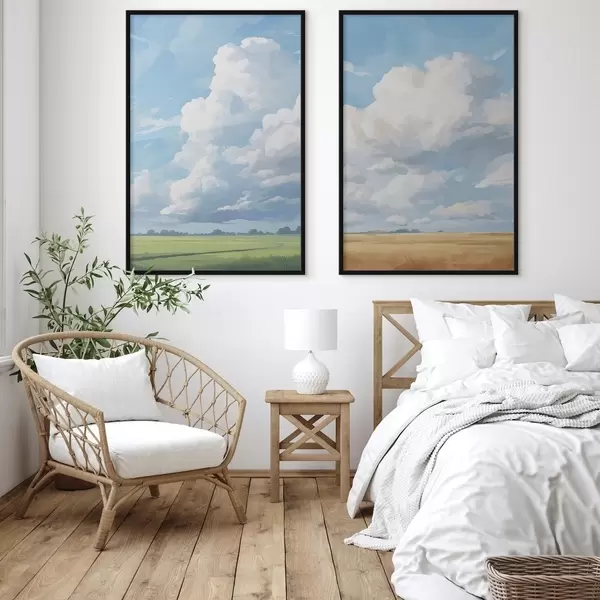 Poster Veld tegen de lucht met enorme wolken N° d00624