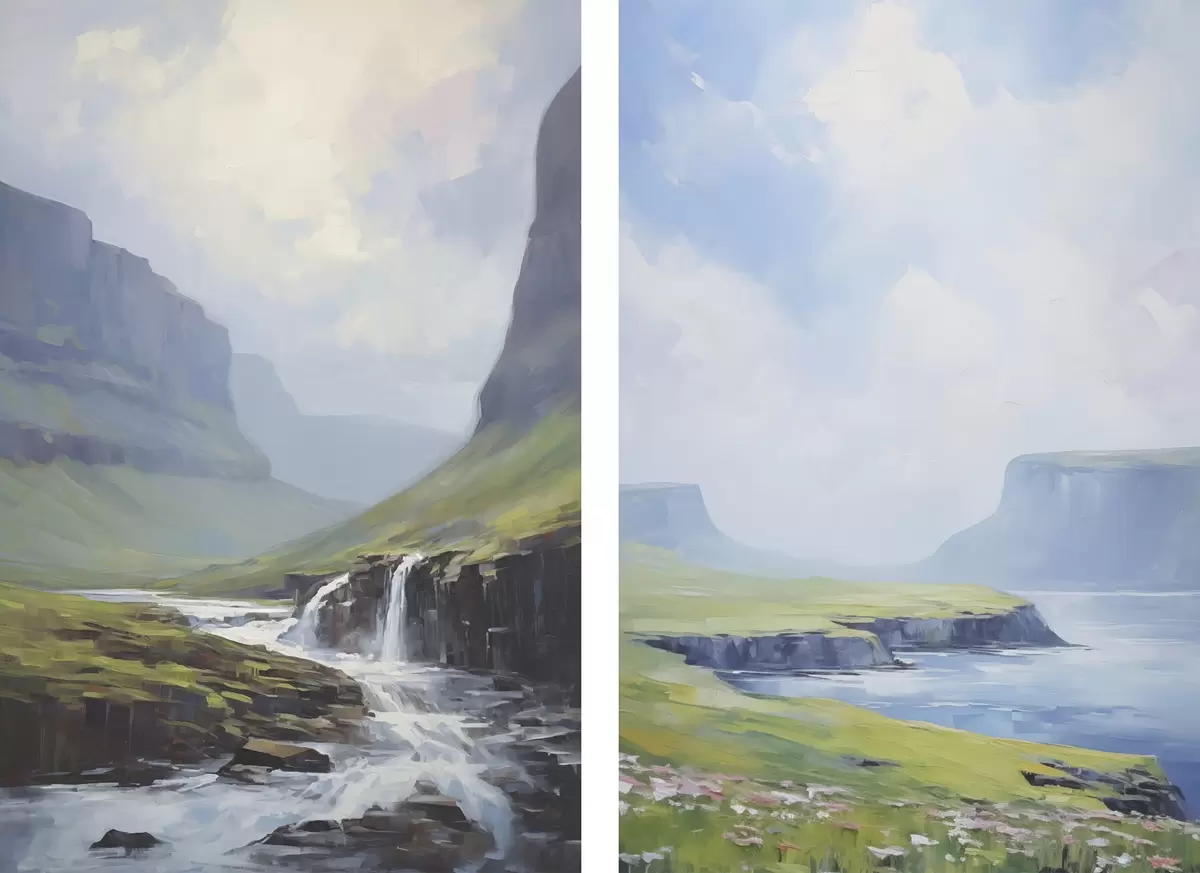Er zijn drie soorten materiaal te bestellen: Economic Canvas - een dicht en duurzaam materiaal voor digitaal printen, identiek aan schildersdoek, waterdicht oppervlak, realistische weergave van details, materiaal met gemiddelde korrel. Premium Canvas - de textuur lijkt op die van schildersdoek (verweven kleine draden). Zachte, gedetailleerde reproductie van de afbeelding op een mat oppervlak. Eco-Premium - hoogwaardige 100% katoenen stof. Dankzij de natuurlijke katoenvezels is het materiaal duurzaam en slijtvast. Uitstekende kleurweergave en detail.