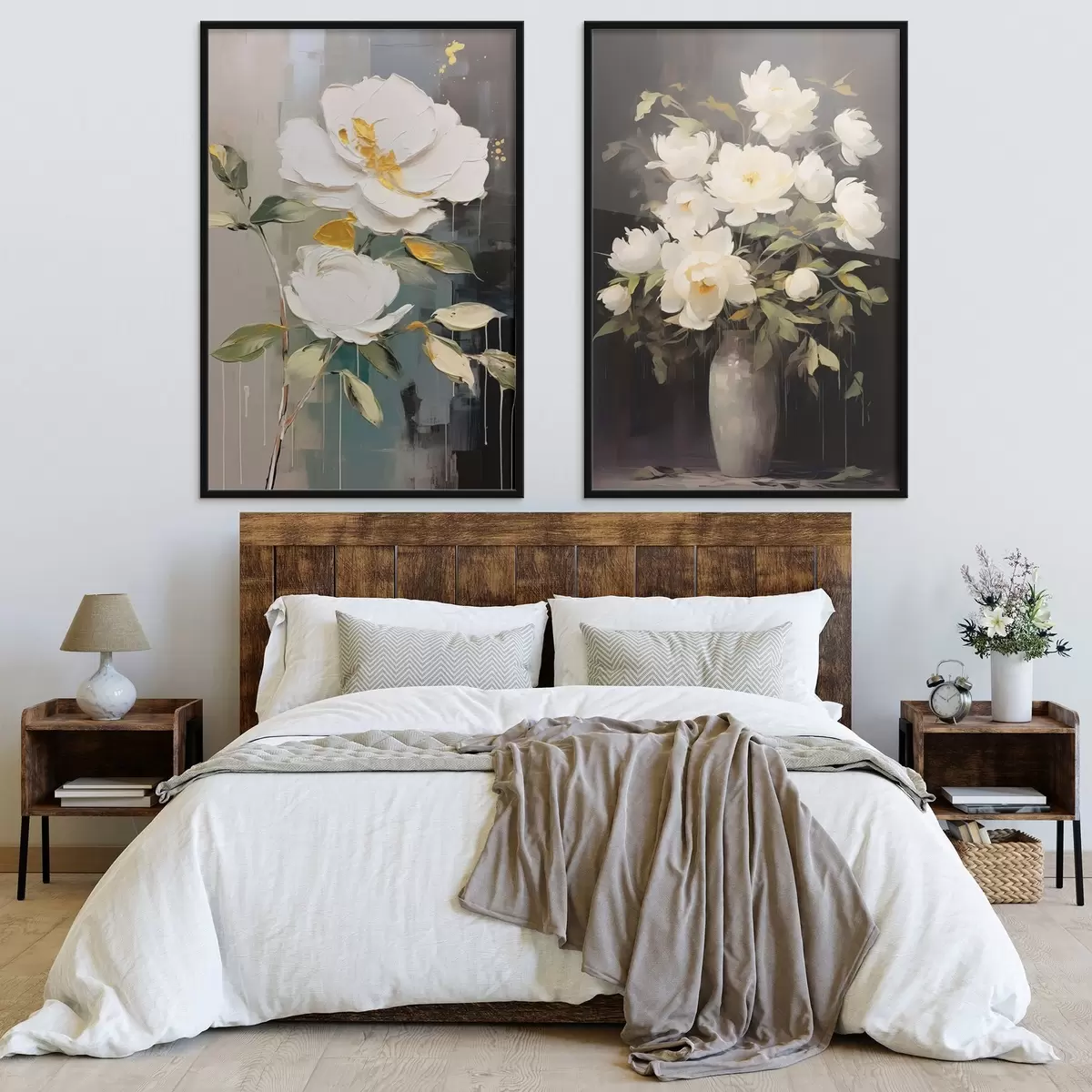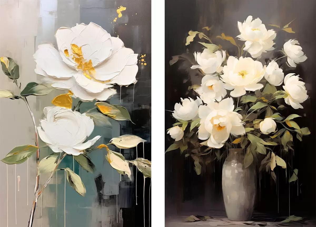 Poster Witte pioenrozen op een donkere achtergrond: decoratieve compositie d00634
