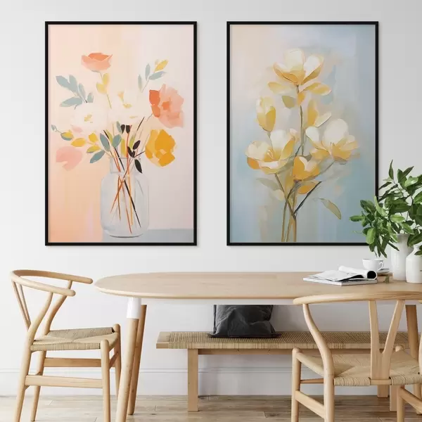 Poster Bloemen in een vaas: tekenen in de stijl van olieverfschilderijen d00636