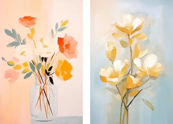 Poster Bloemen in een vaas: tekenen in de stijl van olieverfschilderijen d00636