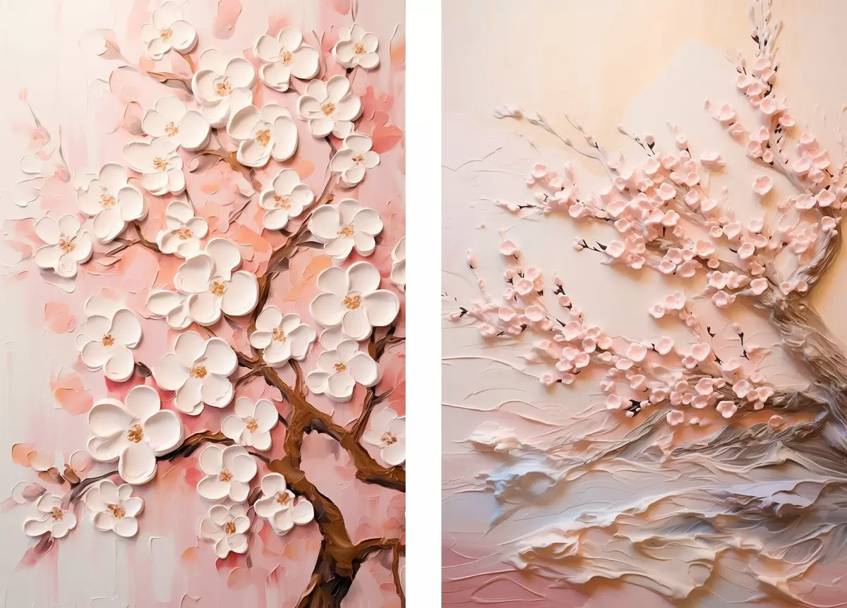 Poster Bloeiende sakura: compositie in impasto stijl d00638