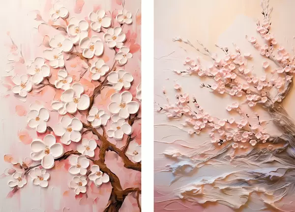 Poster Bloeiende sakura: compositie in impasto stijl N° d00638