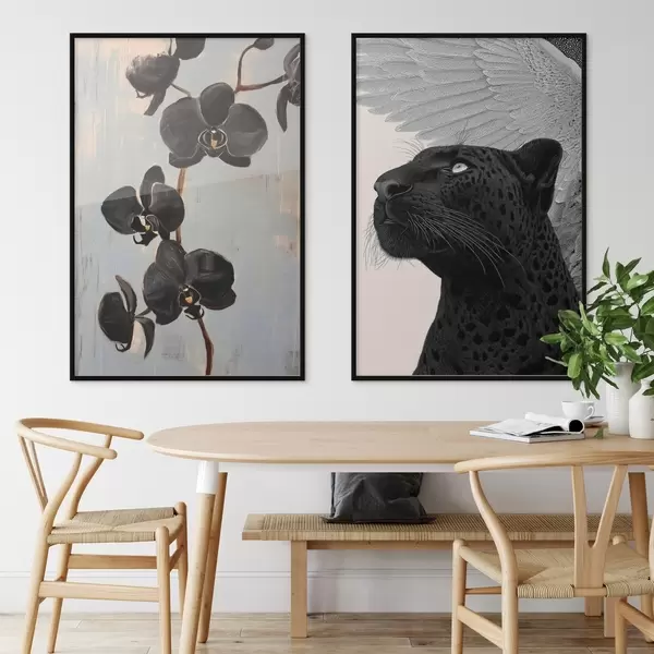 Poster Donkere orchideeën en gevleugeld beest: artistieke compositie N° d00640