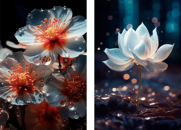 Poster Waterbloemen: compositie met lotussen N° d00641
