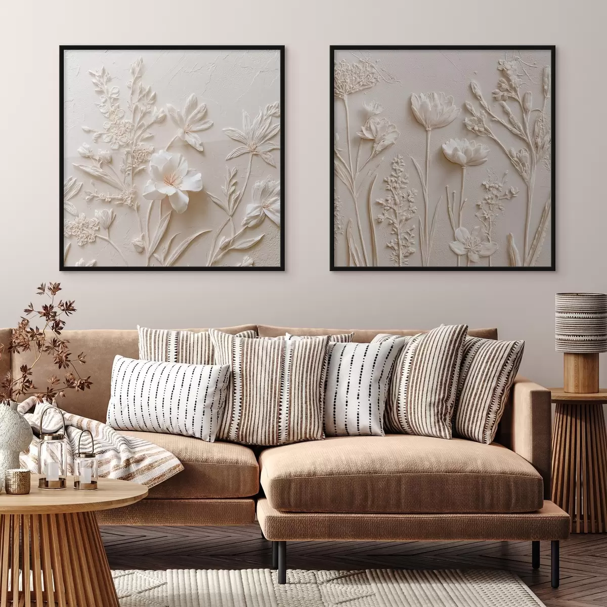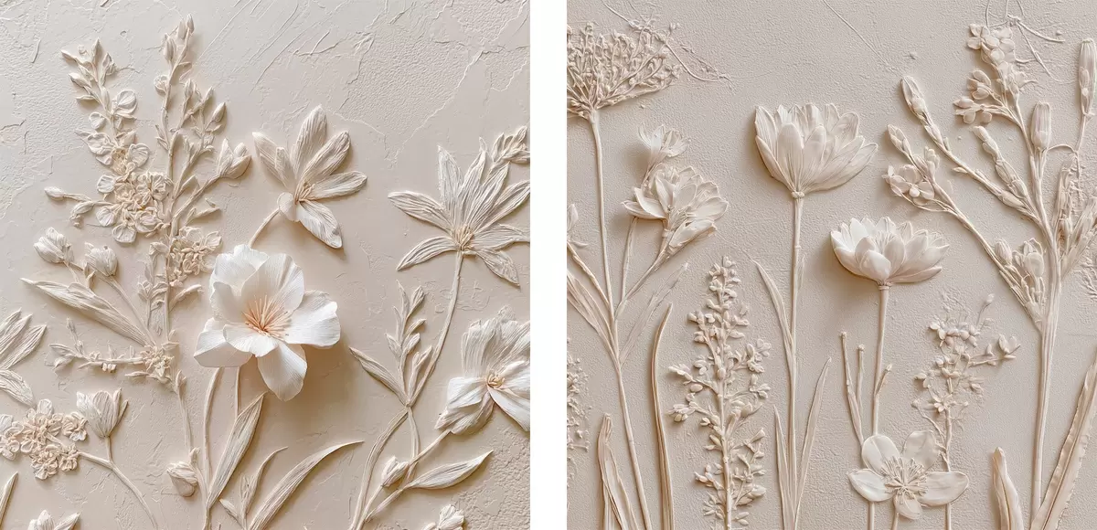 Poster Florale textuur: tekening in stucwerkstijl N° d00642