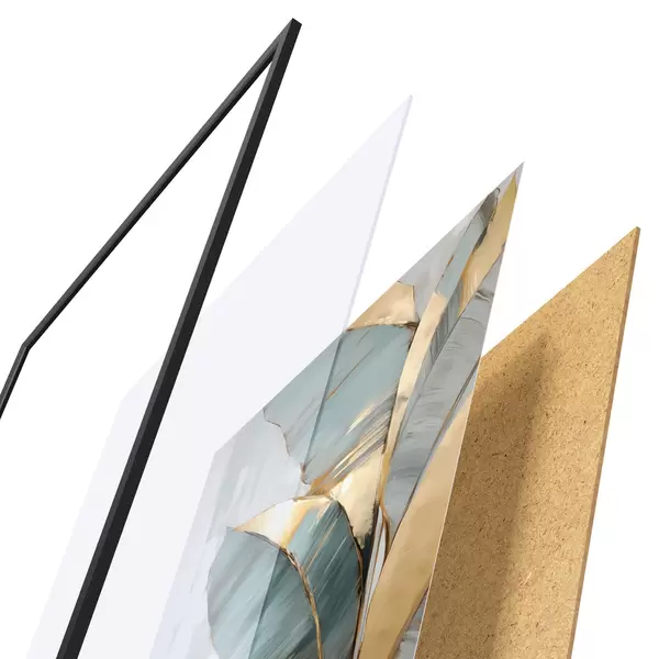 De poster bestaat uit een frame, plexiglas, geprinte afbeelding en spaanplaat achterkant. De poster kan meteen aan de muur worden gehangen dankzij de bevestigingen op de achterkant.