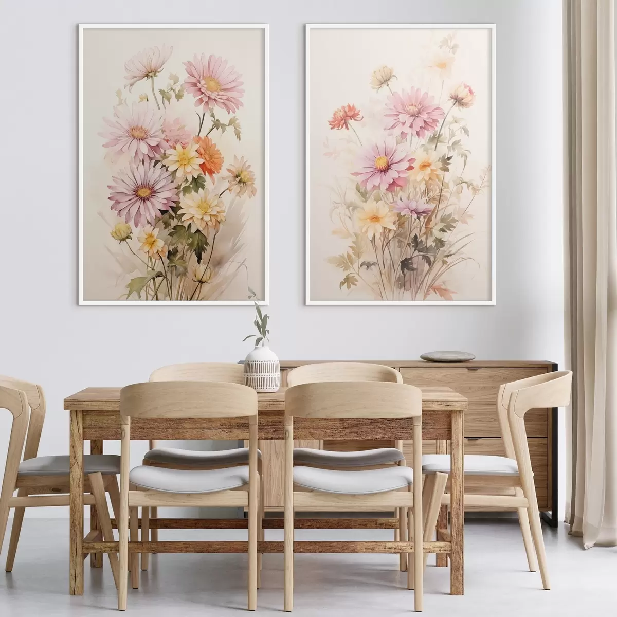 Poster Een boeket kleurrijke bloemen, zachte aquarel stijl, op een lichte achtergrond, botanische illustratie N° d00649