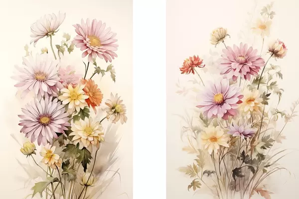 Poster Een boeket kleurrijke bloemen, zachte aquarel stijl, op een lichte achtergrond, botanische illustratie d00649