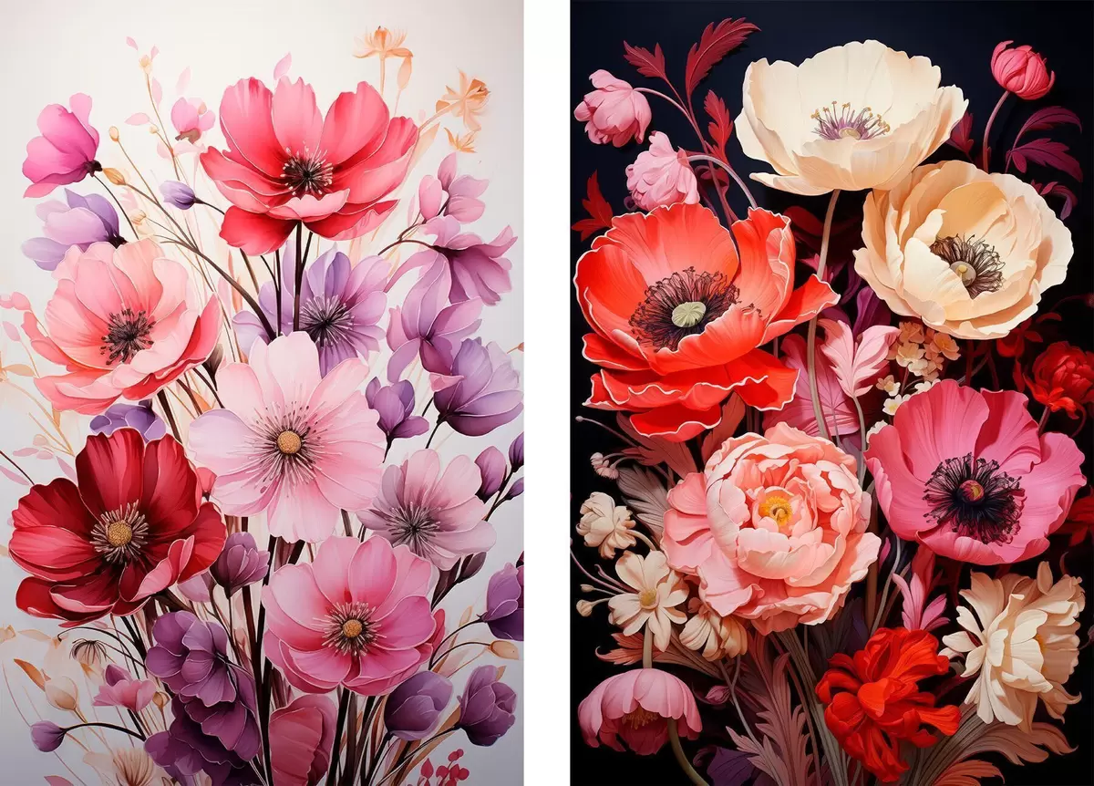 Poster Boeketten van klaprozen in pastelkleuren en rijke tinten N° d00661