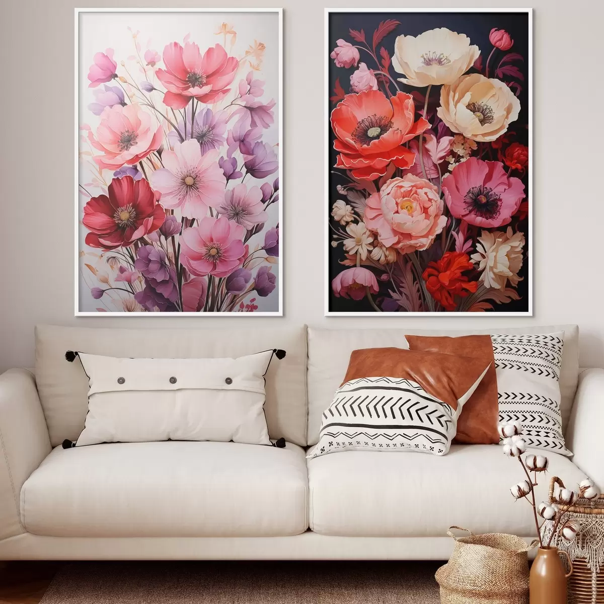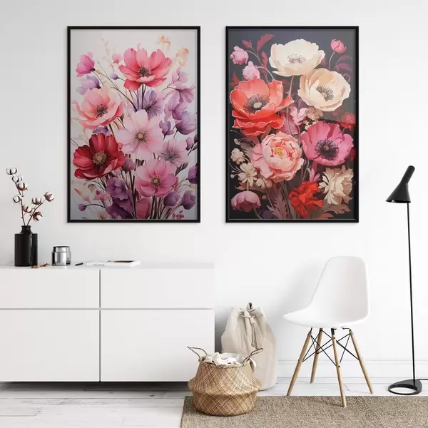 Poster Boeketten van klaprozen in pastelkleuren en rijke tinten d00661