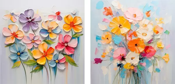 Poster Abstracte composities van heldere bloemen gemaakt in impasto techniek d00662
