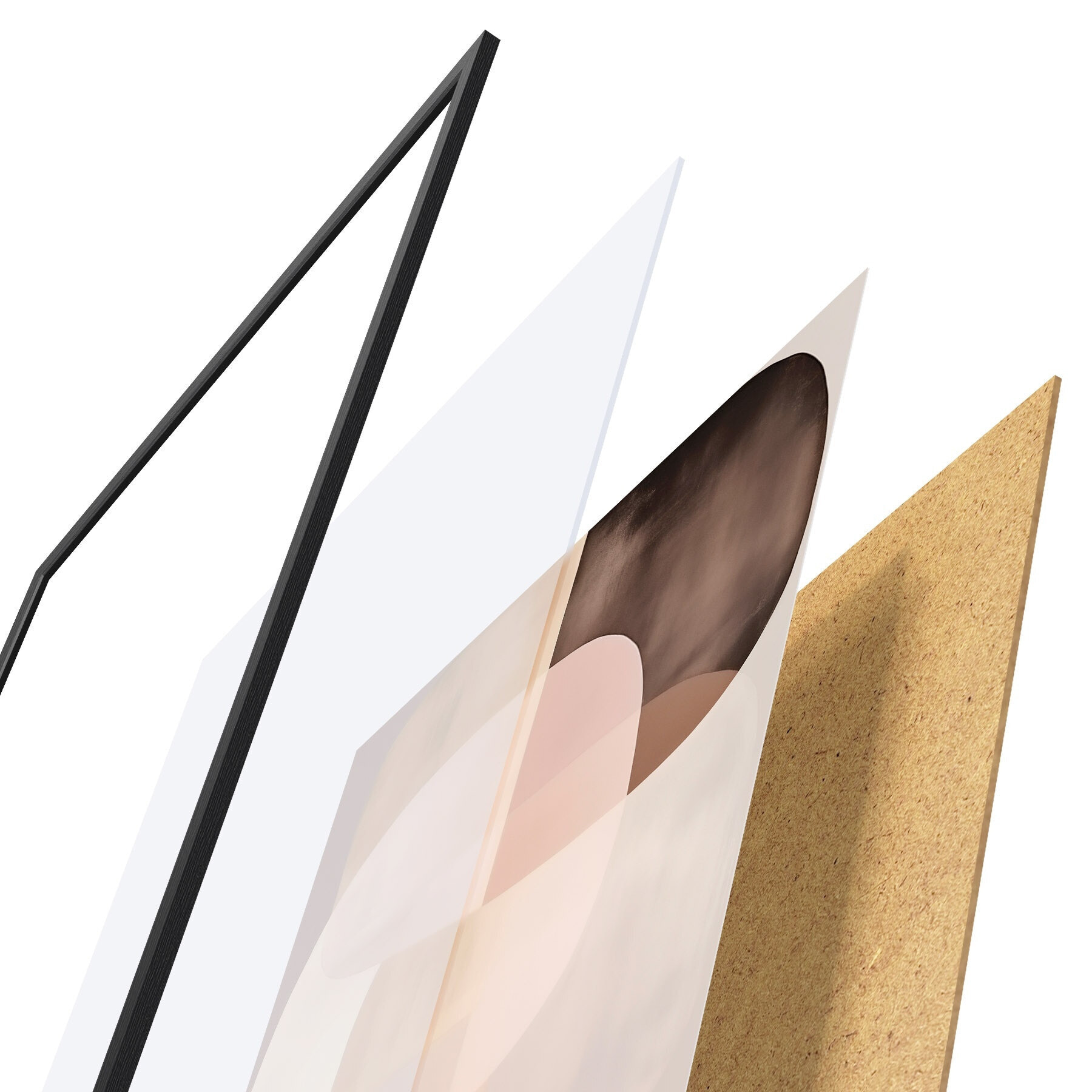 De poster bestaat uit een frame, plexiglas, geprinte afbeelding en spaanplaat achterkant. De poster kan meteen aan de muur worden gehangen dankzij de bevestigingen op de achterkant.