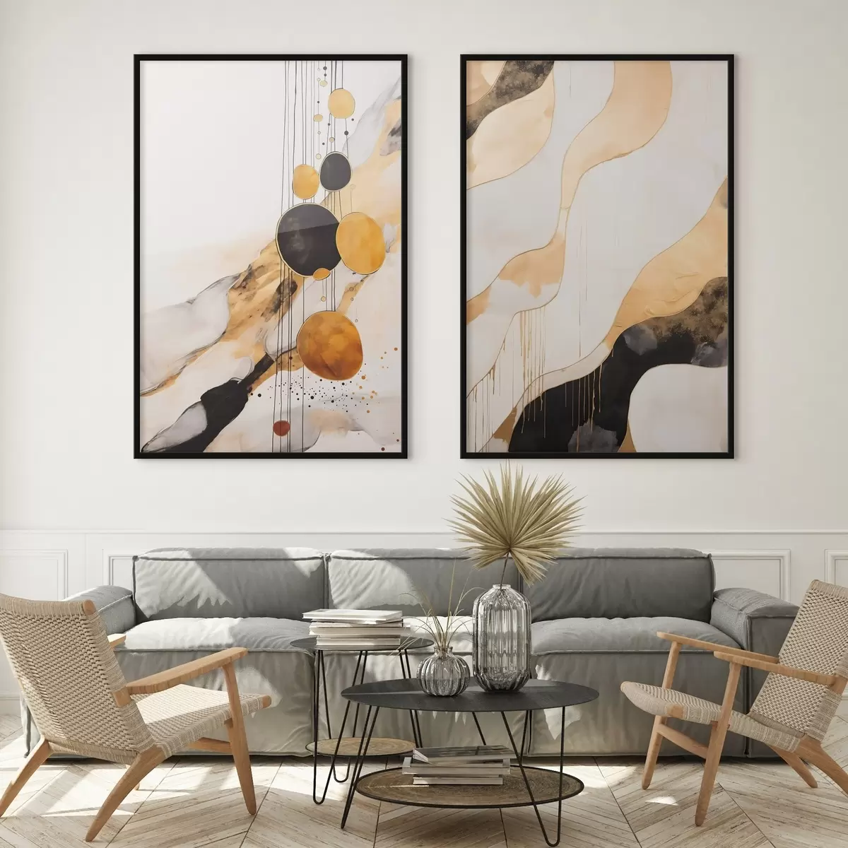 Poster Abstracte compositie met zwarte en oranje cirkels N° d00684
