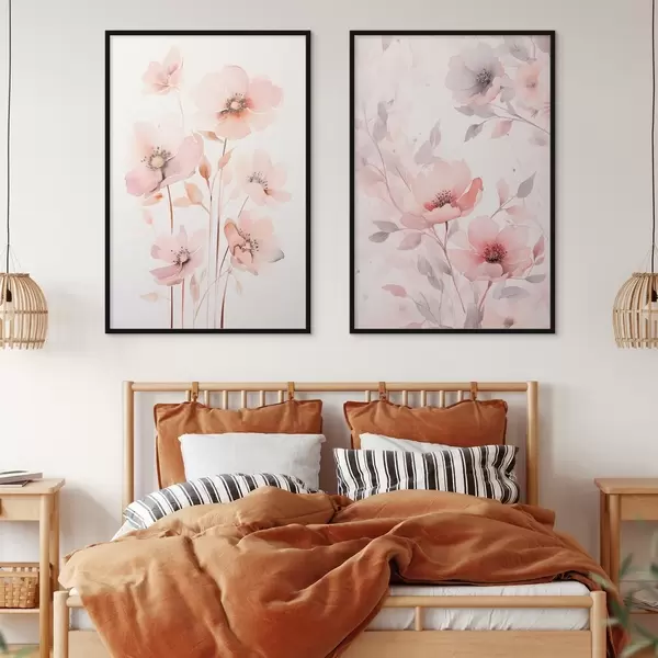 Poster Aquarelroze bloemen op dunne stelen N° d00690