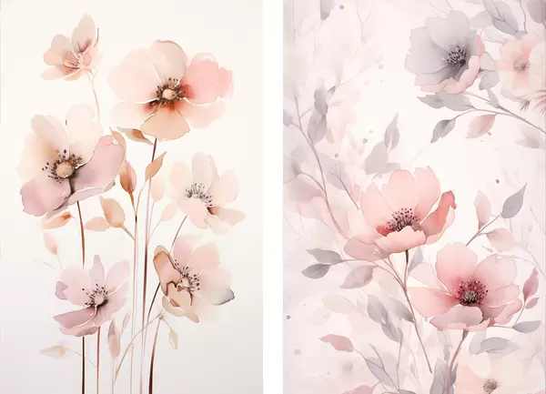 Poster Aquarelroze bloemen op dunne stelen N° d00690
