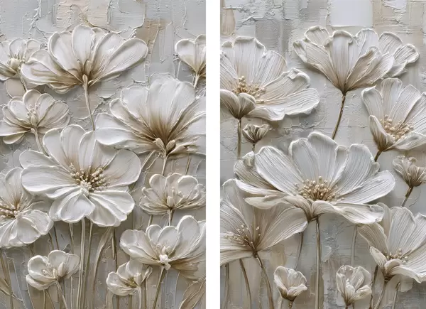 Poster crèmekleurige bloemen in imitatie-impastostijl N° d00701