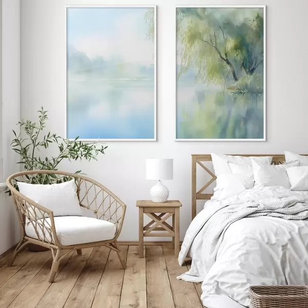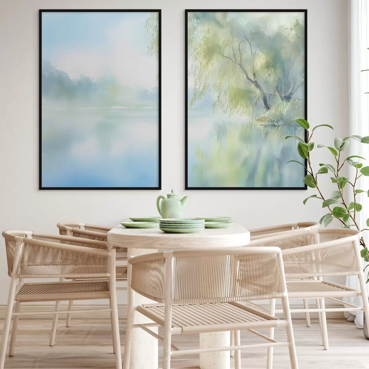Poster wilgenboom aan de oever van het meer in aquarelstijl N° d00702