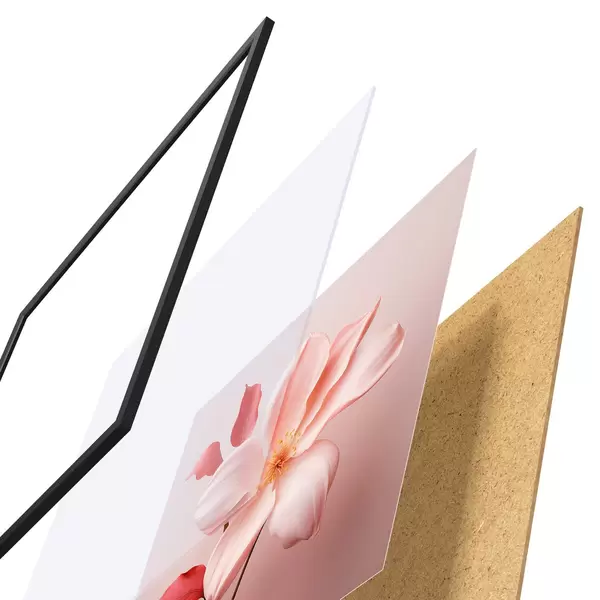 De poster bestaat uit een frame, plexiglas, geprinte afbeelding en spaanplaat achterkant. De poster kan meteen aan de muur worden gehangen dankzij de bevestigingen op de achterkant.
