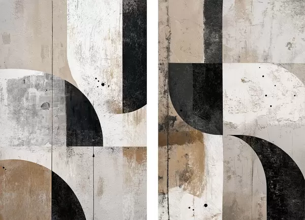 Poster Geometrische vormen in beige en zwarte tinten d00750