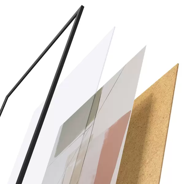 De poster bestaat uit een frame, plexiglas, geprinte afbeelding en spaanplaat achterkant. De poster kan meteen aan de muur worden gehangen dankzij de bevestigingen op de achterkant.