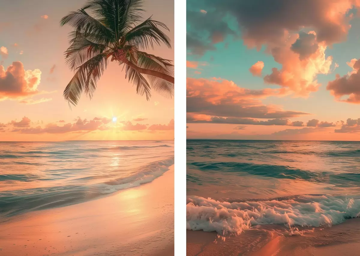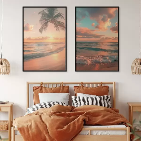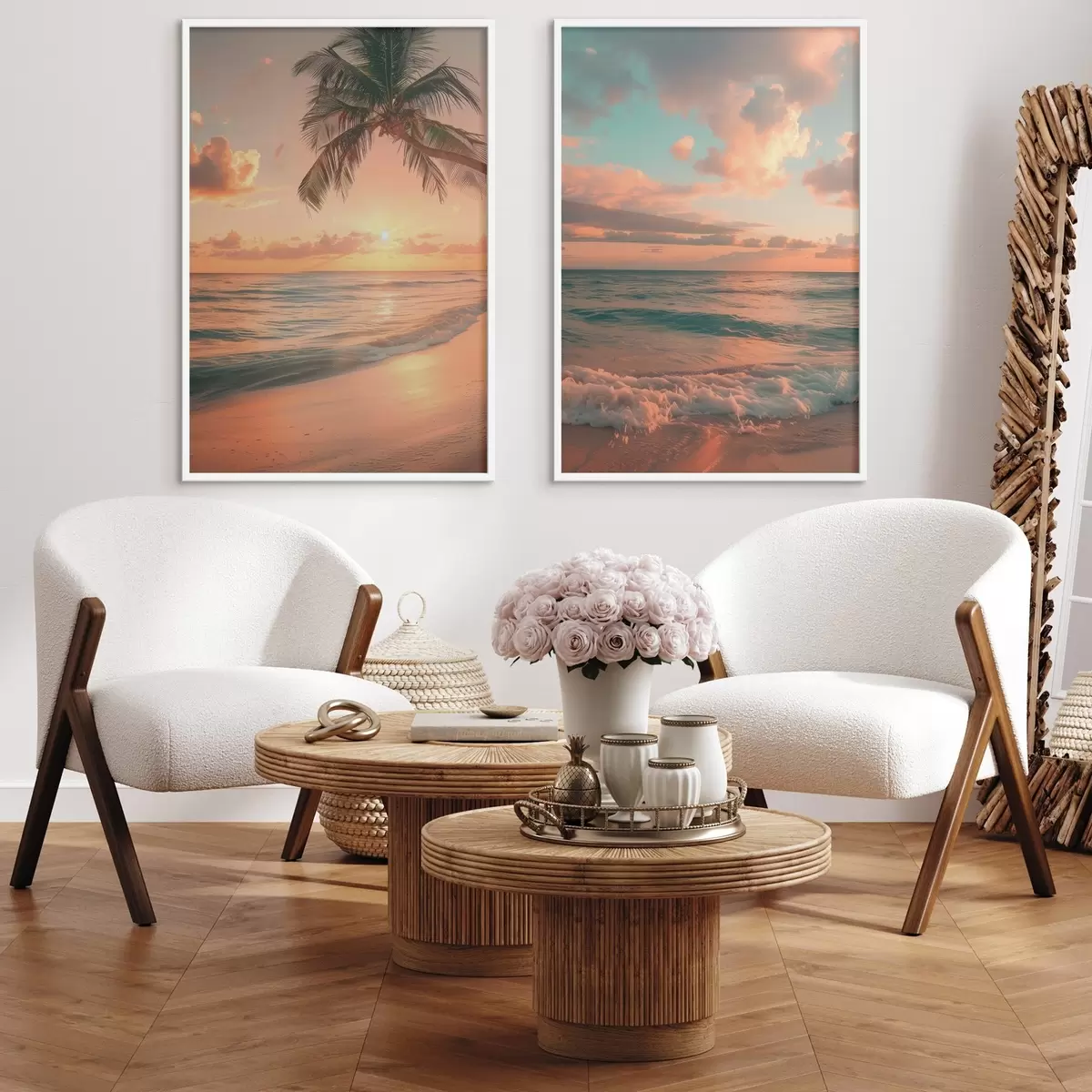 Poster Zonsondergang aan de kust met uitzicht op de golven N° d00787