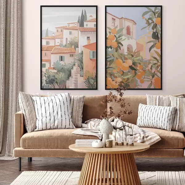 Je kunt het schilderij ophangen aan schroeven. Hiervoor leveren we bevestigingen bij onze foto's, zodat je de foto gemakkelijk kunt ophangen.