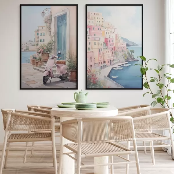 Je kunt het schilderij ophangen aan schroeven. Hiervoor leveren we bevestigingen bij onze foto's, zodat je de foto gemakkelijk kunt ophangen.