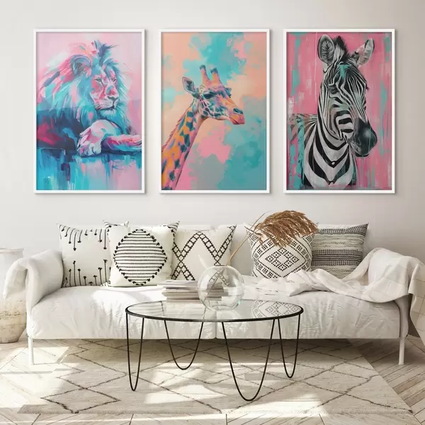 Je kunt het schilderij ophangen aan schroeven. Hiervoor leveren we bevestigingen bij onze foto's, zodat je de foto gemakkelijk kunt ophangen.