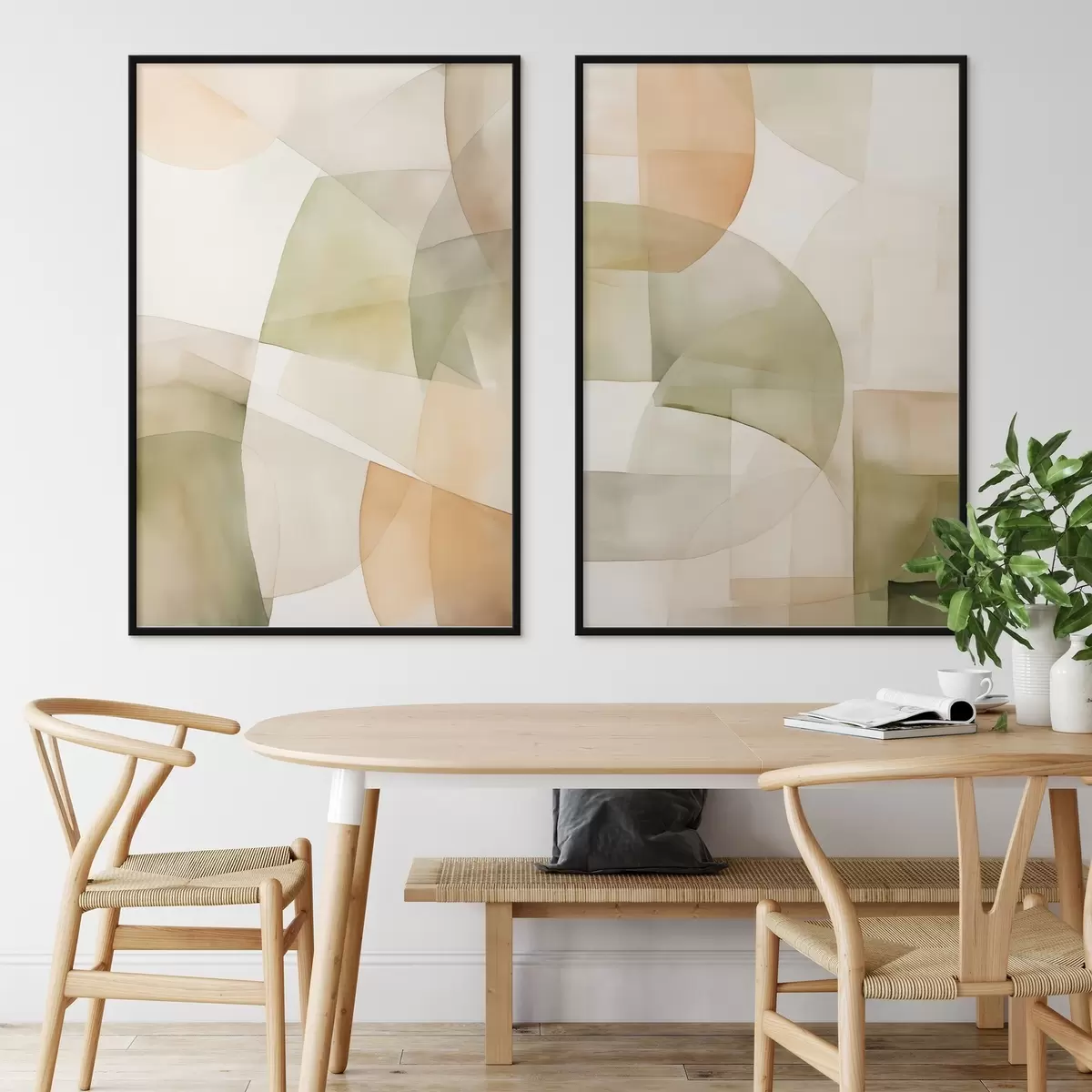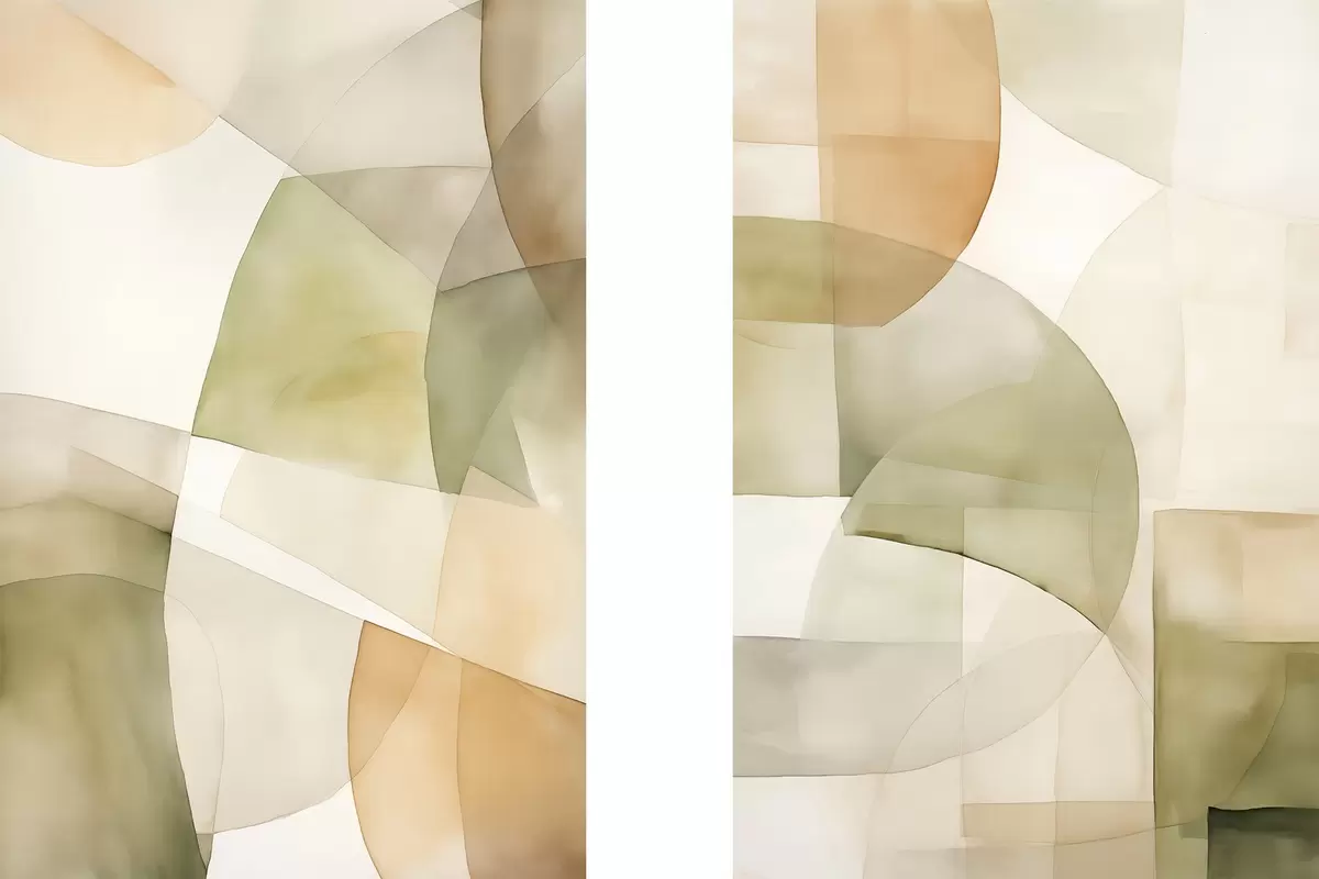 Poster Abstracte geometrische vormen met waterverftextuur in tinten groen, bruin en beige N° d00820