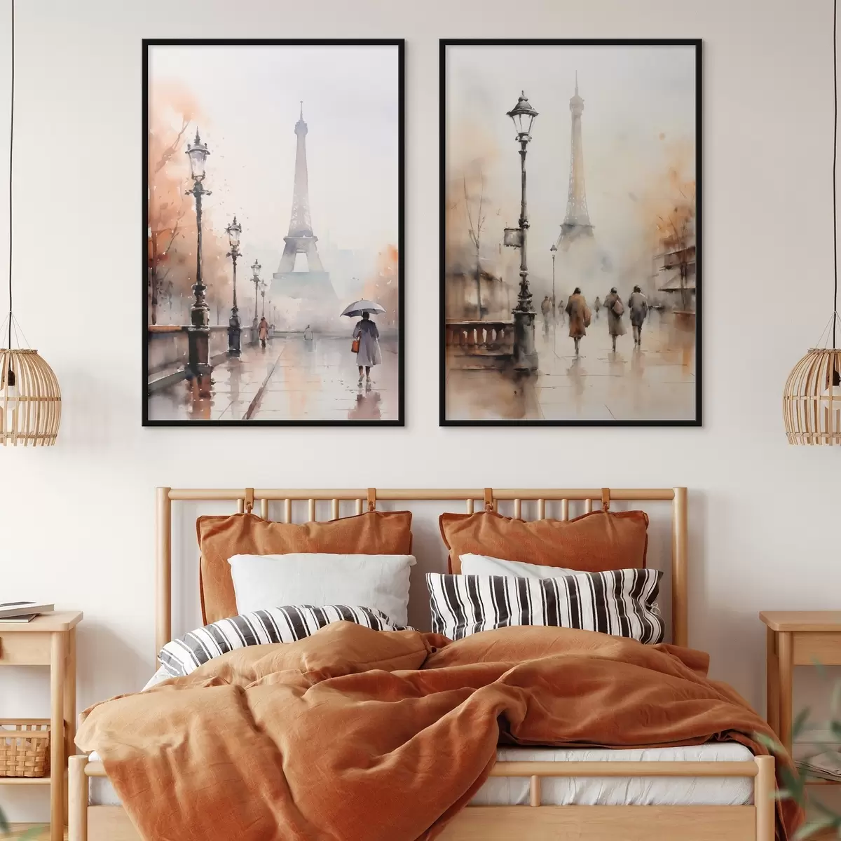 Poster Een regenachtige herfstdag in Parijs met de Eiffeltoren op de achtergrond en vintage straatlantaarns N° d00821