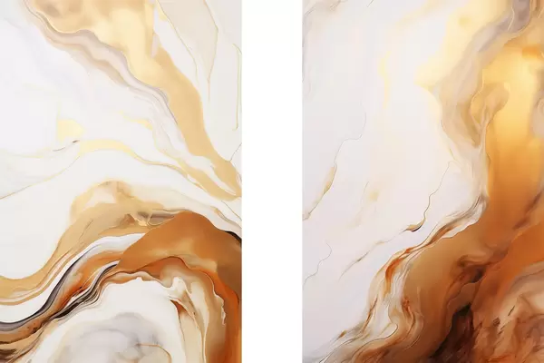 Poster Abstracte schilderkunst imitatie met witte en oranje kleuren, vloeiende kunst met golvende lijnen, moderne kunst d00825