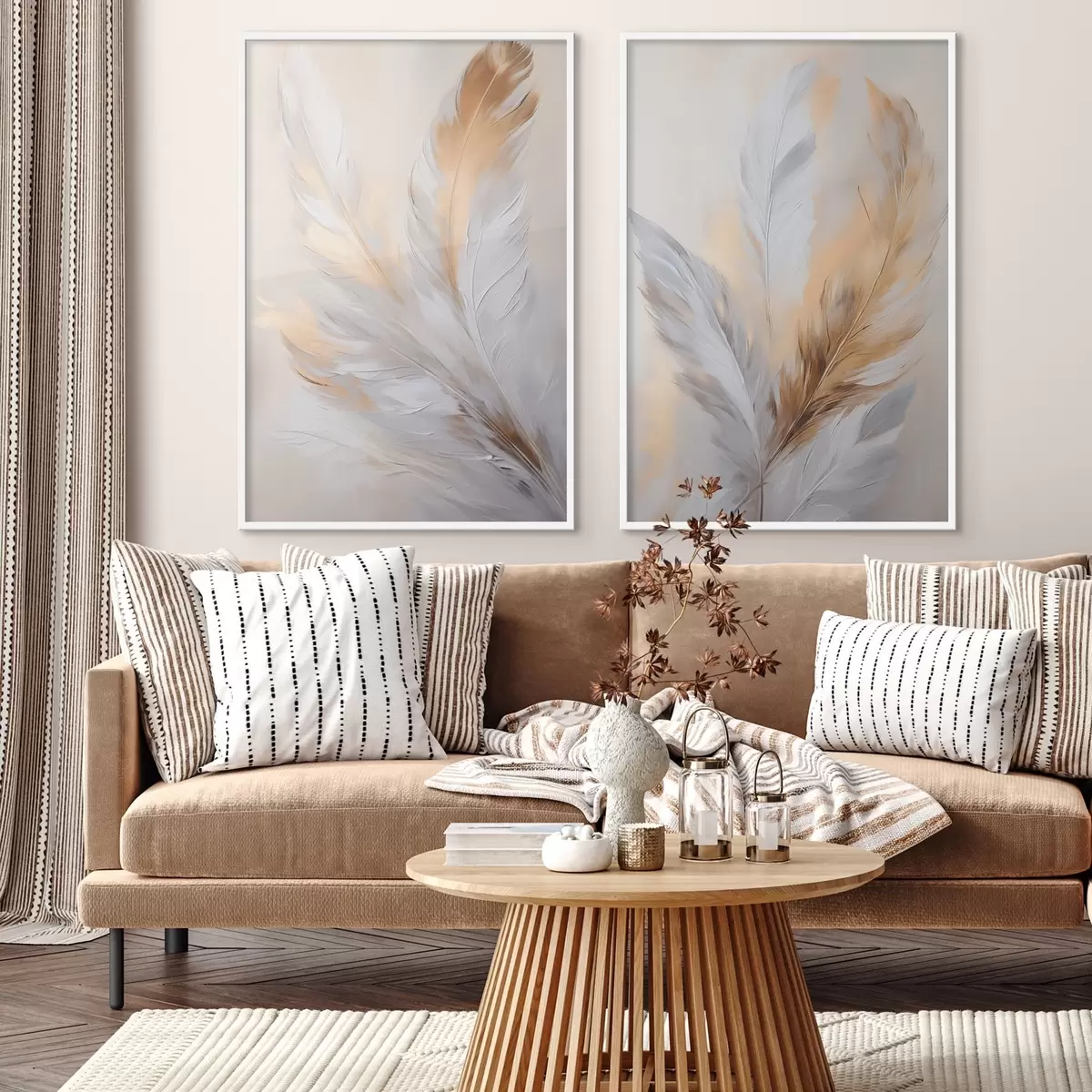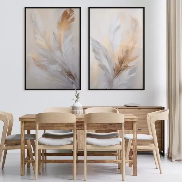 Poster Veren met oranje accenten, minimalistische compositie met textuur, moderne kunst N° d00828