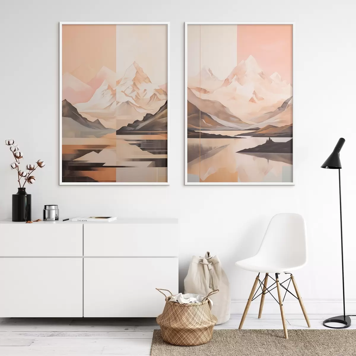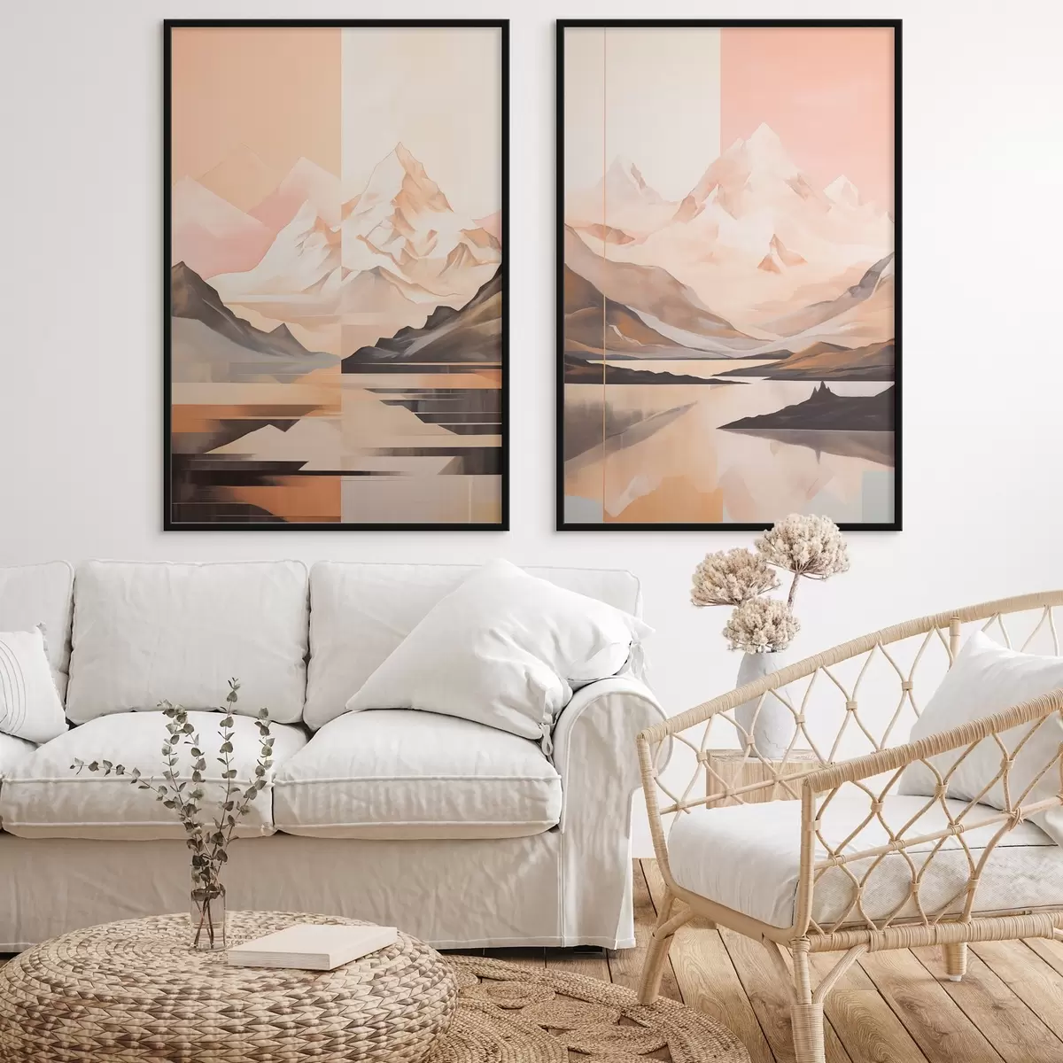 Poster Abstract landschap met bergen en een meer, pastelkleuren, minimalistische stijl N° d00830