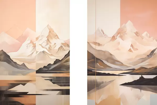 Poster Abstract landschap met bergen en een meer, pastelkleuren, minimalistische stijl d00830
