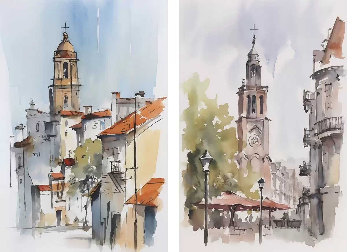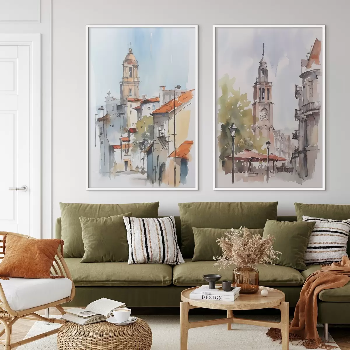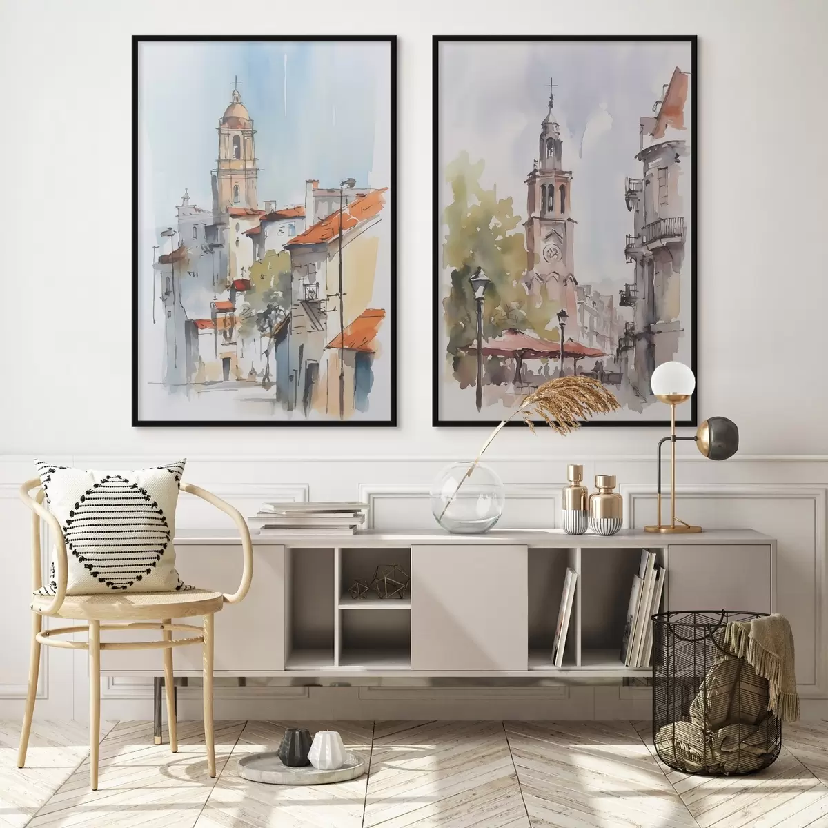 Poster Stadsgezicht imitatie aquarel N° d00832