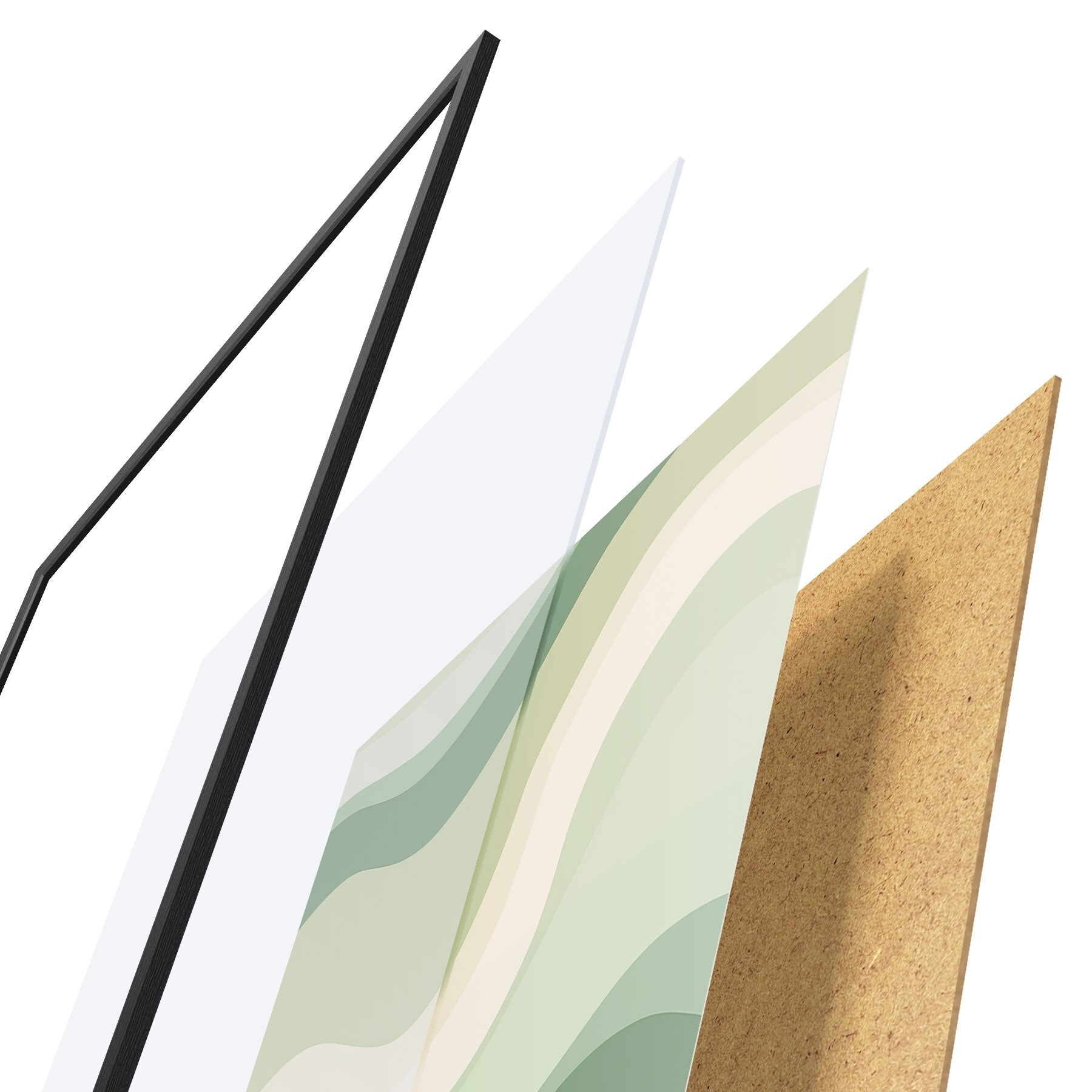 De poster bestaat uit een frame, plexiglas, geprinte afbeelding en spaanplaat achterkant. De poster kan meteen aan de muur worden gehangen dankzij de bevestigingen op de achterkant.