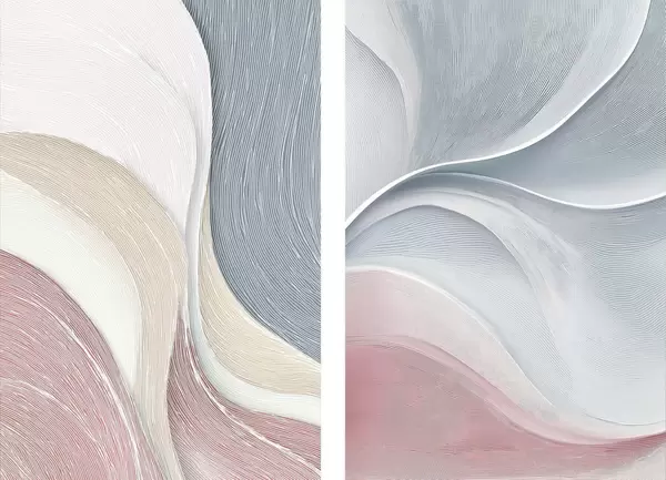 Poster Abstracte golven in roze-beige-blauwe tinten N° d00874