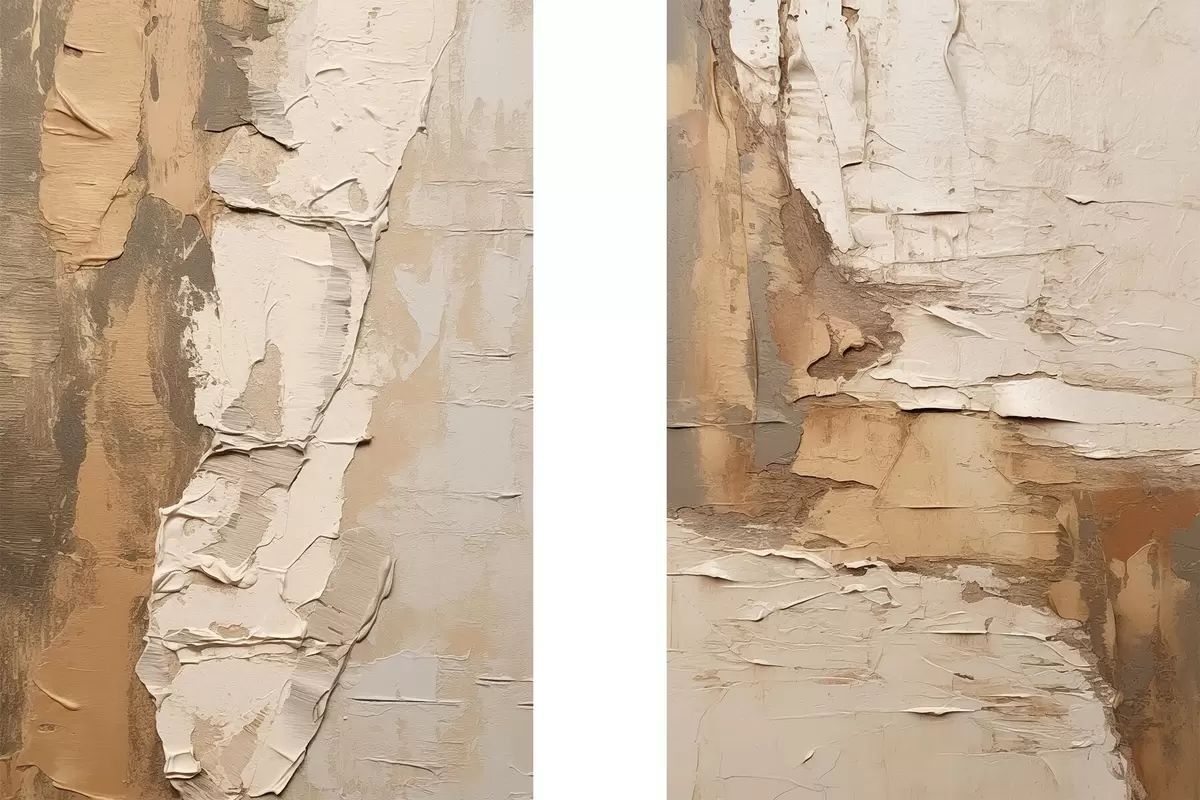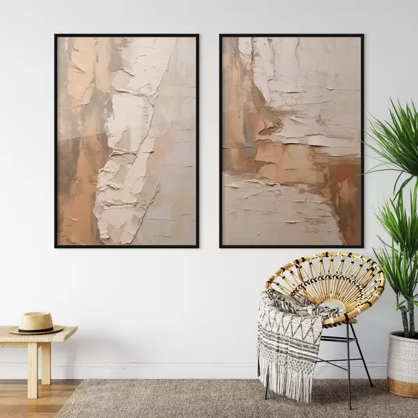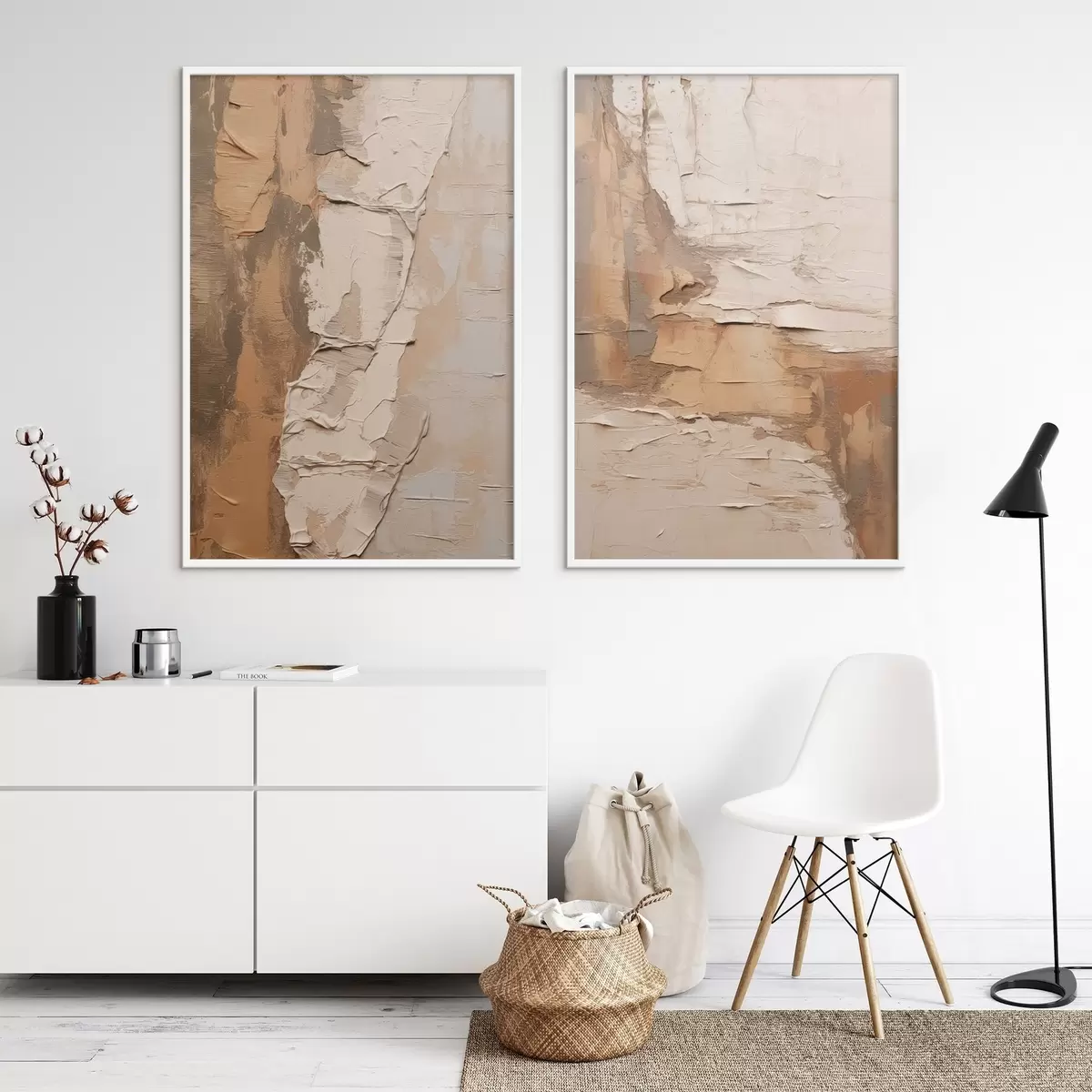 Poster Abstract schilderij met dikke penseelstreken, beige en bruine tinten, gestructureerd oppervlak, neutraal kleurenpalet N° d00879