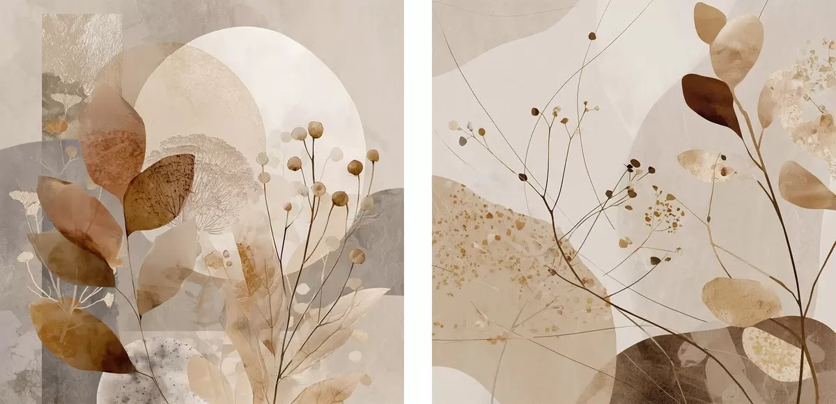 Poster Abstracte bloemencompositie in twee delen N° d00892