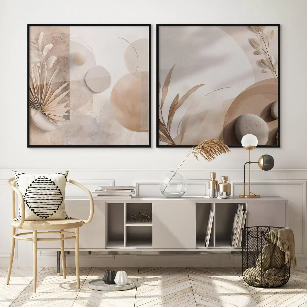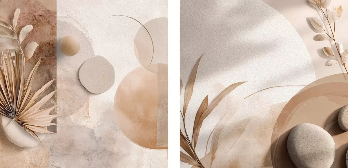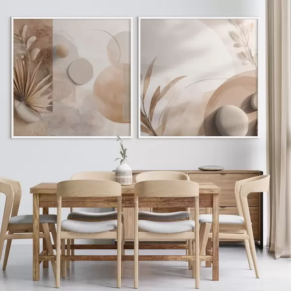 Poster Twee doeken met gedroogde bladeren en gestructureerde vormen N° d00893