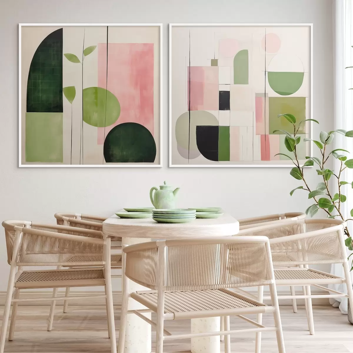 Poster Minimalistisch tweeluik met gestileerde flora en geometrie N° d00894