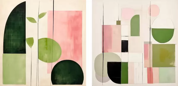 Poster Minimalistisch tweeluik met gestileerde flora en geometrie N° d00894