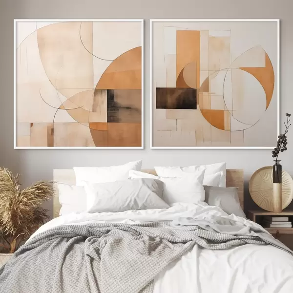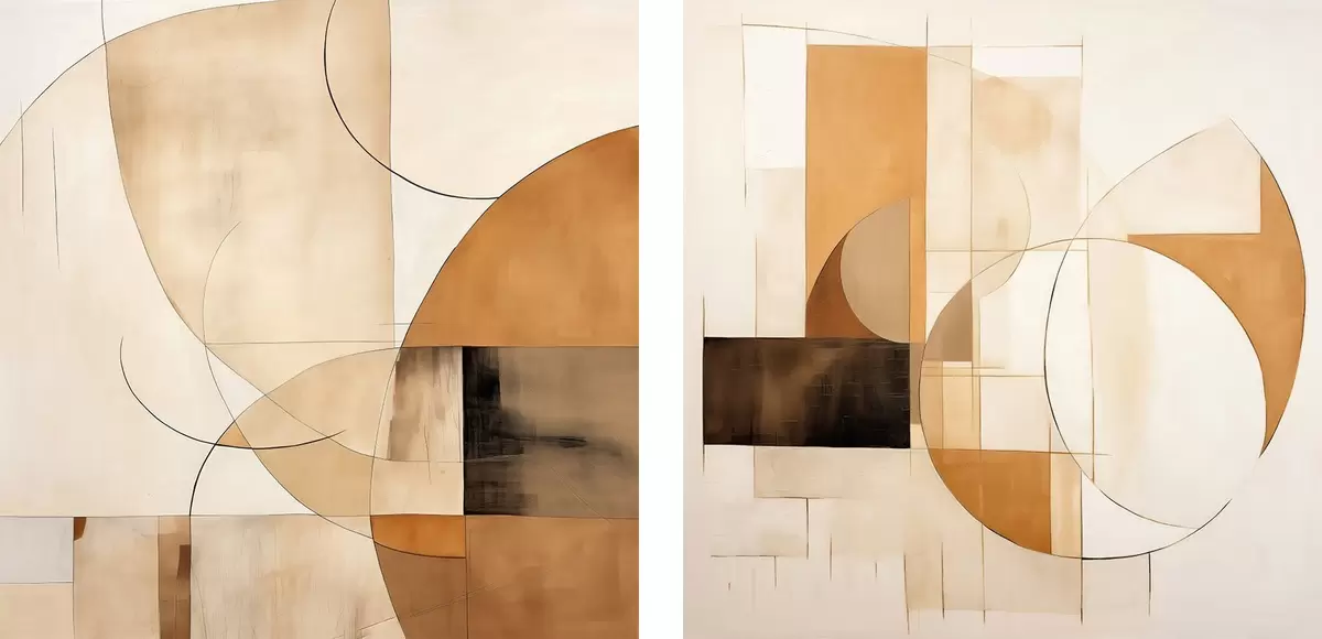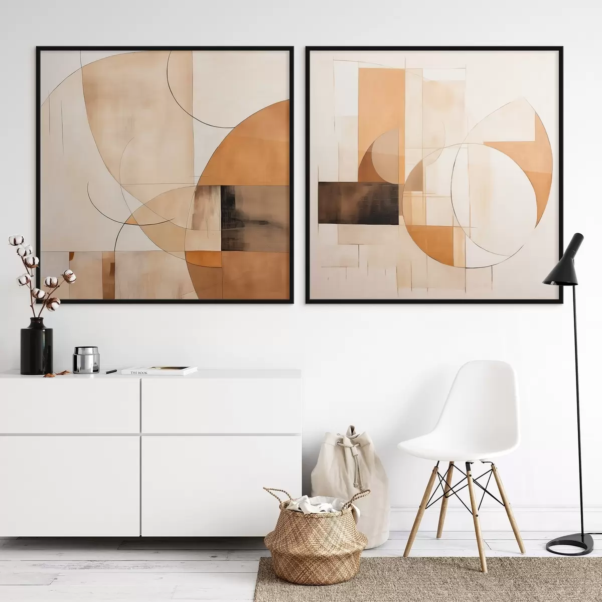 Poster Moderne abstractie met cirkels en lijnen in koffiekleuren met melk N° d00898