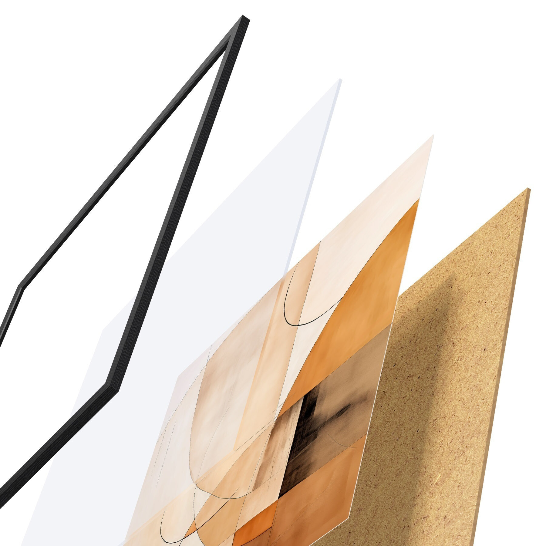 De poster bestaat uit een frame, plexiglas, geprinte afbeelding en spaanplaat achterkant. De poster kan meteen aan de muur worden gehangen dankzij de bevestigingen op de achterkant.