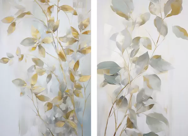 Poster Abstracte bladeren imitatie van schilderij N° d00907